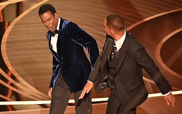 Violence broke out on stage when Smith slapped host Rock on stage after the comedian made a joke about his wife’s hair only minutes before he picked up his gong for winning Best Actor.