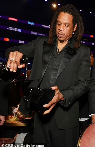 Jay-Z was spotted drinking cognac out of his Grammy Award after his controversial acceptance speech on stage.