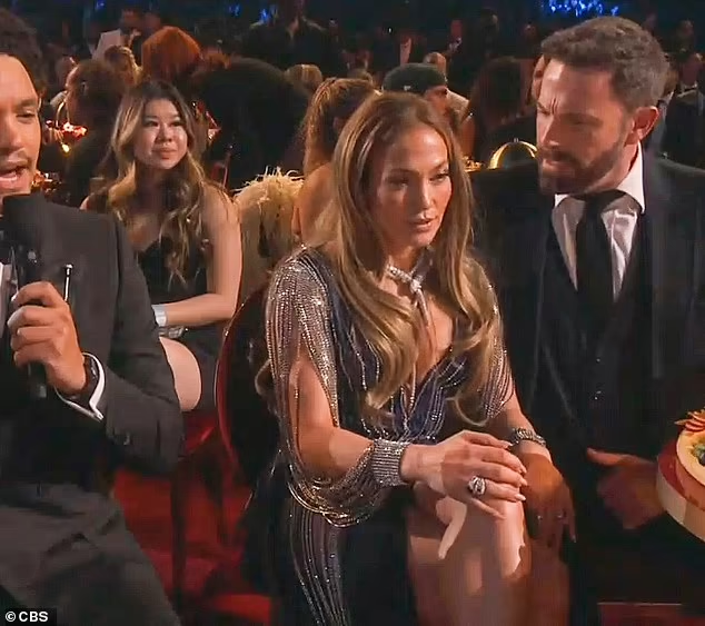 Jennifer Lopez was caught ordering her husband Ben Affleck to ‘stop’ and try to ‘look more friendly and motivated’ during the Grammy Awards on Sunday night.