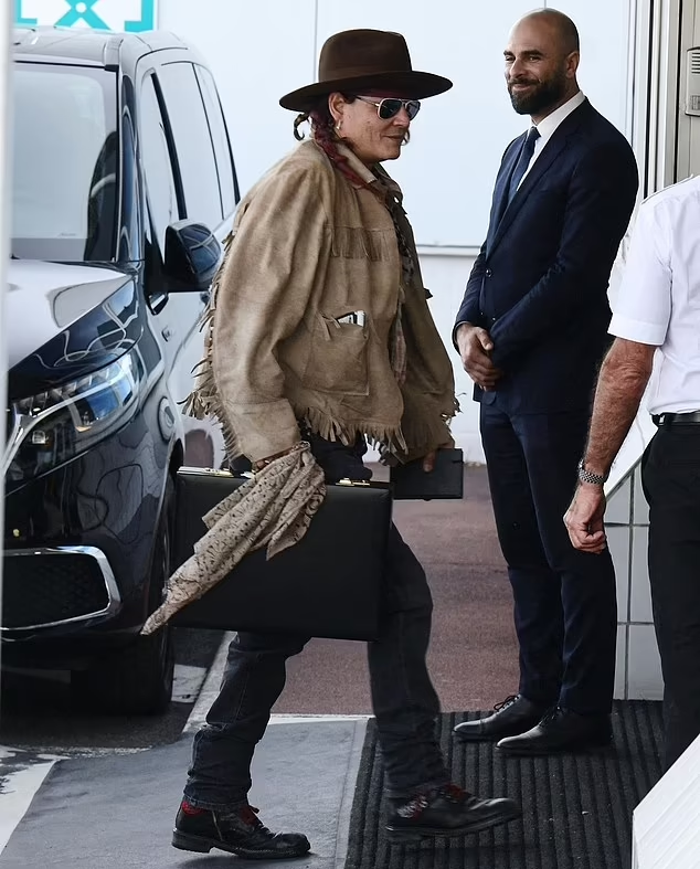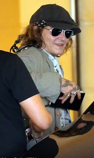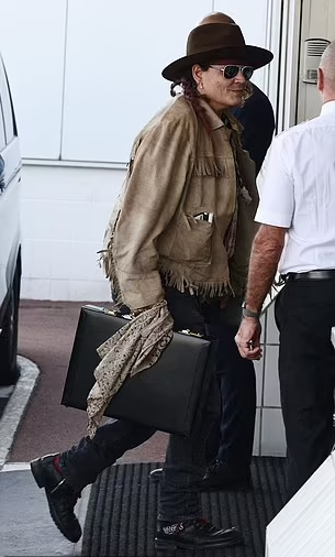 Depp kept a low profile as he wore an oversized fedora and aviator shades to protect his eyes. He donned the jacket over his dark jeans and black boots as he walked to a private jet.