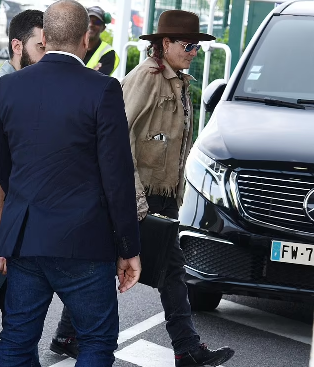 The Pirates of the Caribbean star styled his hair in braids and sported a suede jacket for the trip as he headed to the airport in Paris.