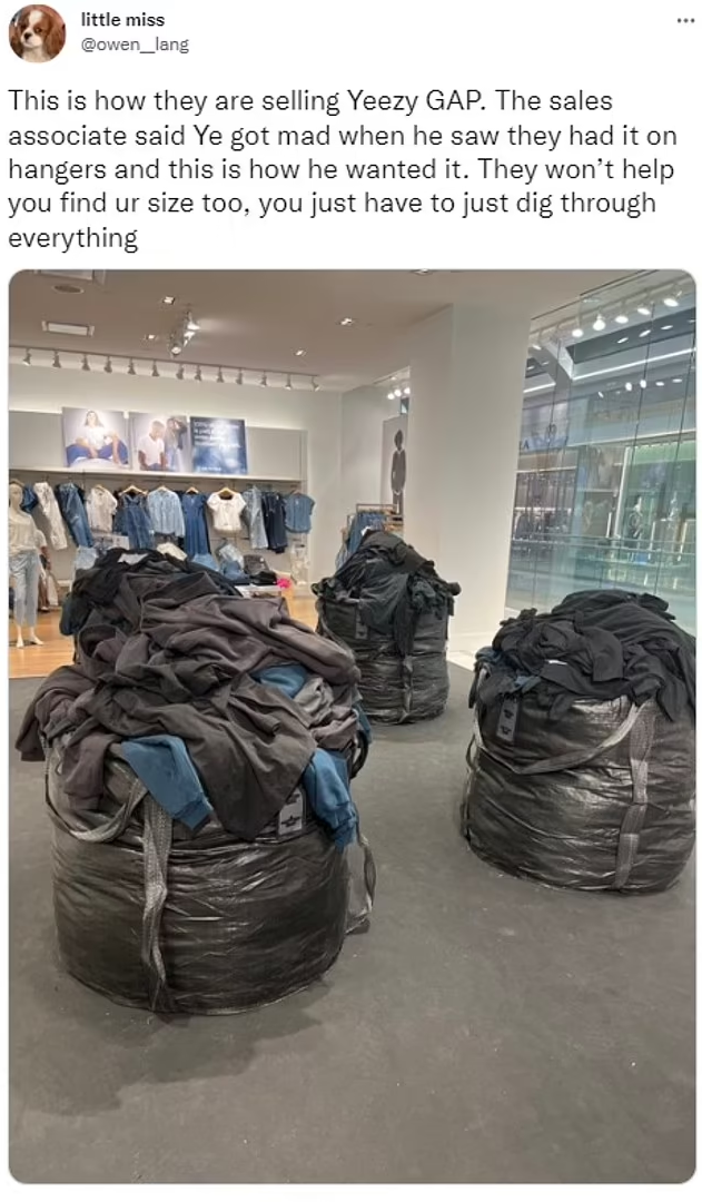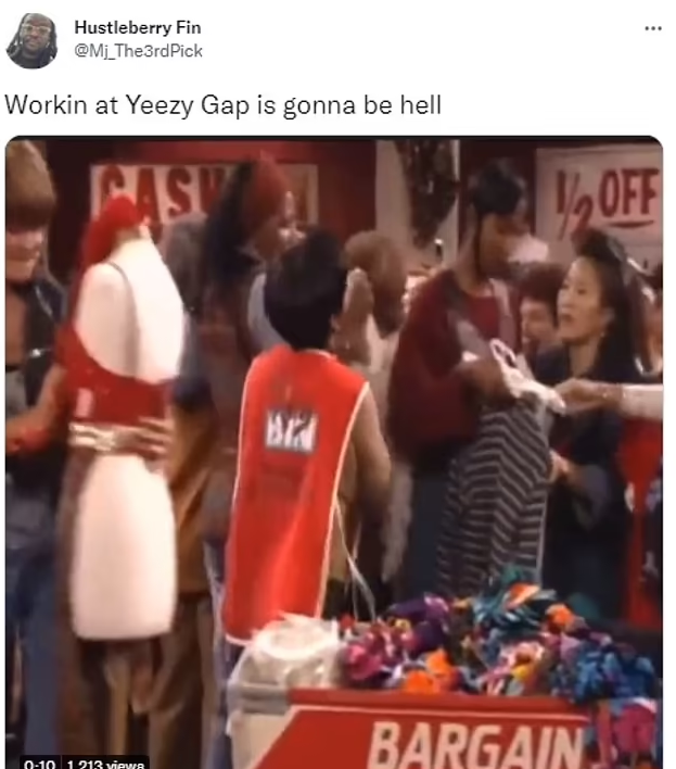 Another tweeted: “Kanye has a whole song about how much he hated working at the Gap. Why would he make Gap employees’ lives harder? Whole store is about to look like laundry baskets threw up. They’re gonna have one cashier and everybody else doing recovery.”