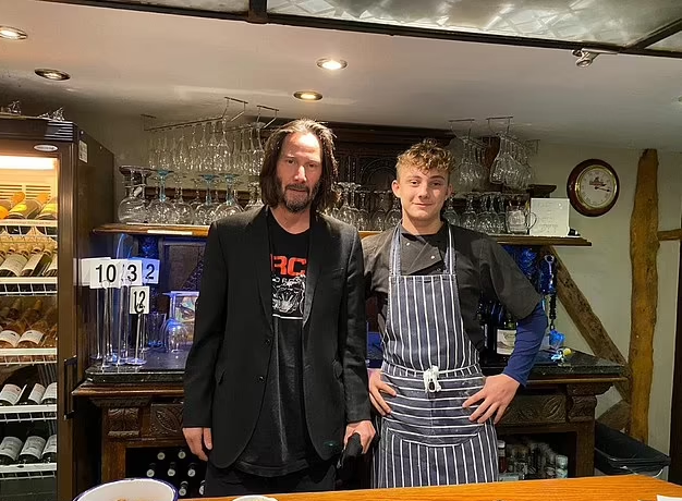 Keanu left customers’ jaws on the floor when he turned up for dinner ‘and a few whiskies’ at The Fox and Hounds in Charwelton, where he posed for photos and chatted with punters.