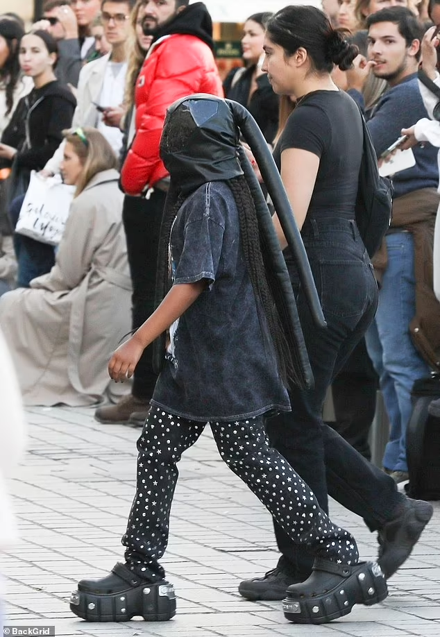 North was in the City of Lights with Kim, who famously sported a full face mask for her own aesthetic reasons.