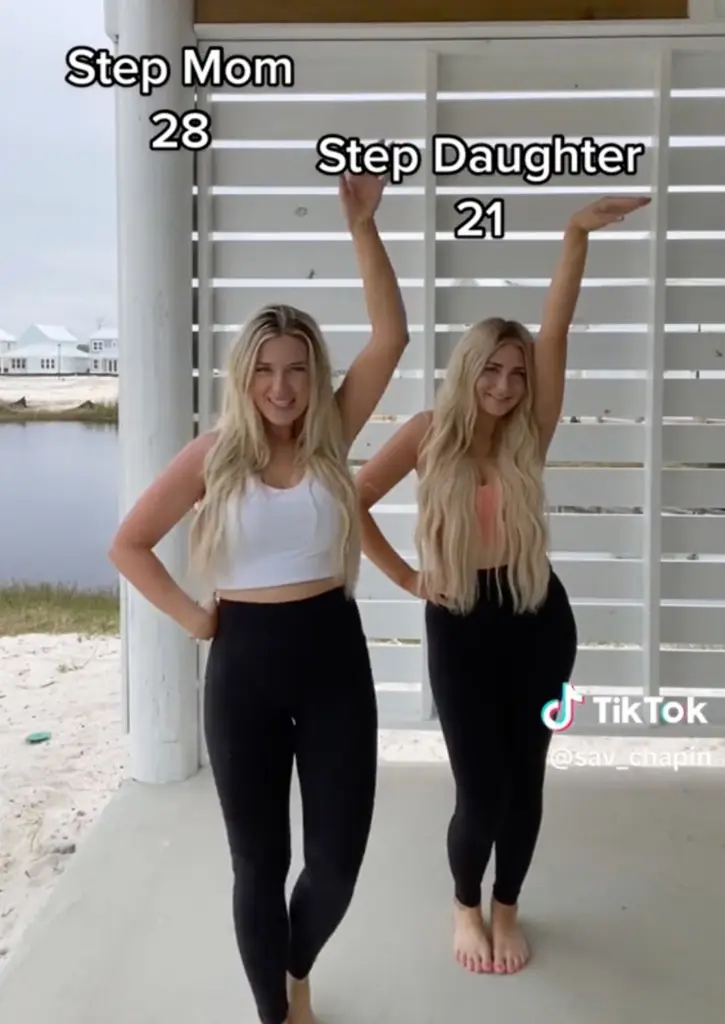 Savana Chapin, 29, and her stepdaughter Tizzi, 22, both have blonde tresses and have similar facial features but they are not blood related at all, leaving many people baffled as they look like a ‘copy and paste’ of one another.