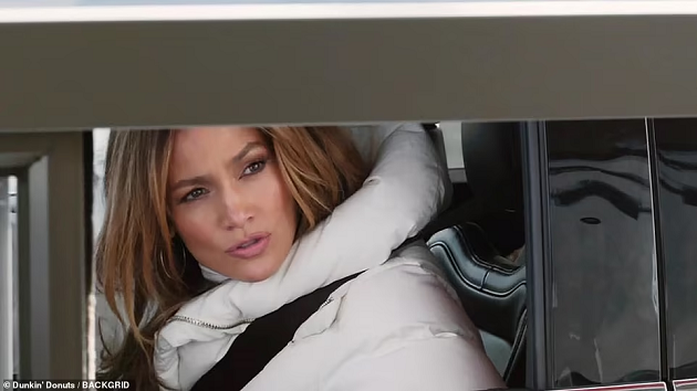 The Marry Me actress looked dazzling with her white puffer jacket as she looked outside her car window.