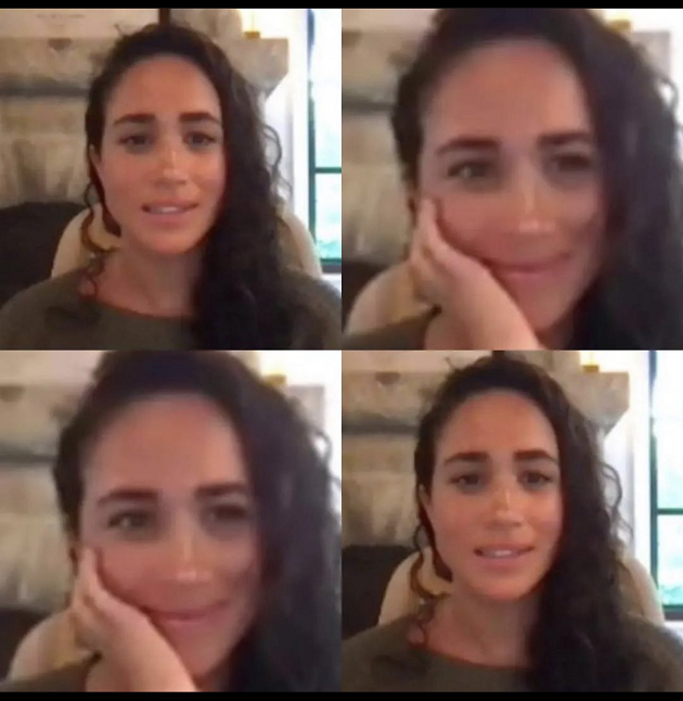 Meghan’s youthful skin also appears to be glowing as she did not apply heavy make-up for the call she took part in.
