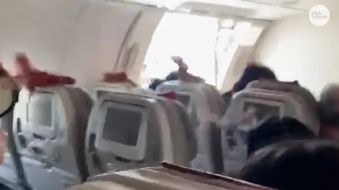 A video posted on social media shows the huge hap in the left side of the plane, leaving the other 193 passengers frightened.