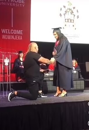 The controversial moment took place at La Trobe University in Melbourne, Australia, where a man stormed the stage during the graduation ceremony only to kneel in front of his girlfriend and propose to her as she accepted her degree.
