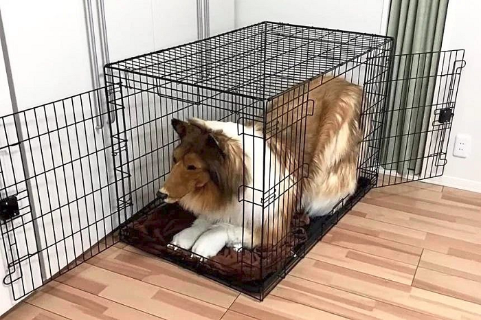 He also has a cage where he rests. In a new video, he can be seen crawling into a cage before the person filming locks the door.