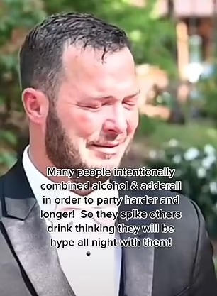 Brandy from Richmond, Kentucky, was left in tears when her husband began stumbling and slurring his words after his drink was spiked with large amounts of Adderall by one of the pair’s wedding guests.