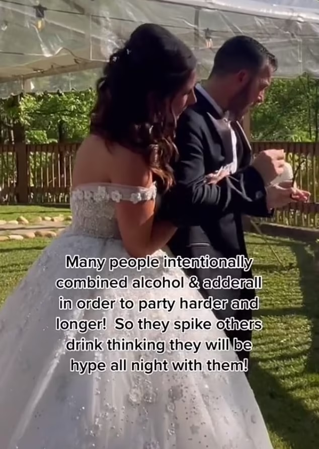 Posting the distressing moment on TikTok, the bride revealed she wanted to raise awareness of the potentially deadly consequences of spiking people’s drinks as she claimed someone did it to her husband.