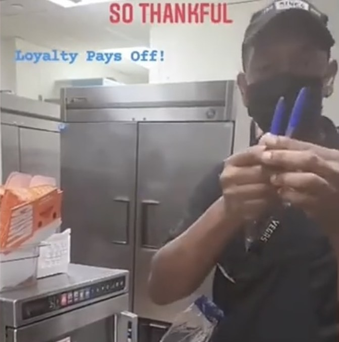 In Ford’s viral video, he praised Burger King for giving him a movie ticket, a Starbucks cup, two pens, keychains, and a bag of candies for his hard work at the company.