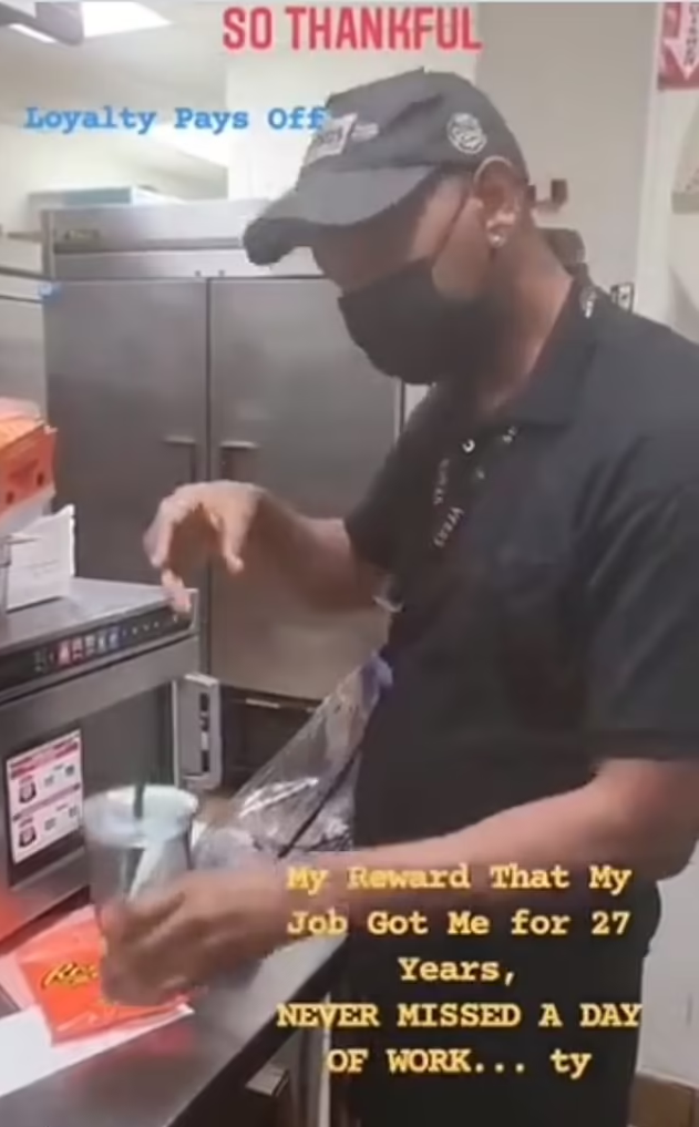 A 60-year-old man who worked for Burger King for 27 years took to social media and shared that he received a movie ticket, a coffee tumbler, some pens, and candy for almost three decades of service.