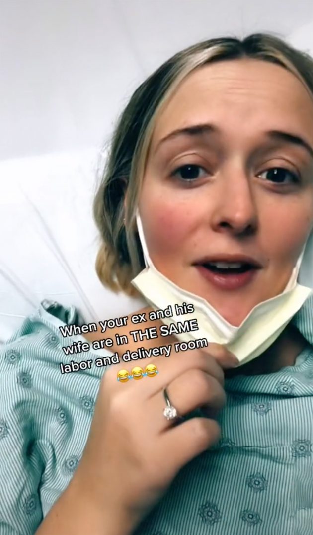 “When your ex and his wife are in THE SAME labor and delivery room,” she wrote on the viral clip as she recounted what happened to her.