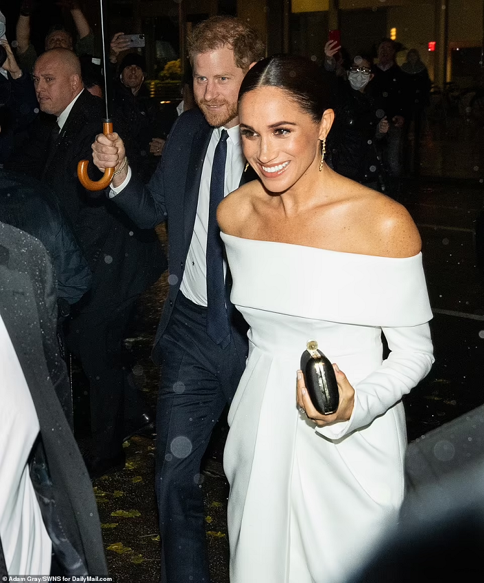Meghan Markle, 41, was seen smiling from ear to ear as she and Prince Harry, 38, made their way into the Ripple of Hope Gala, where tickets were being sold for up to $1 million each.