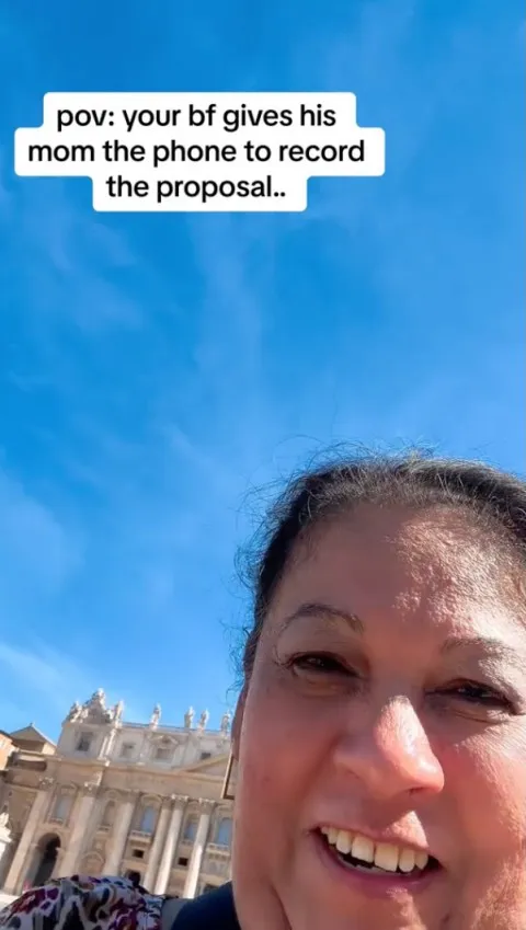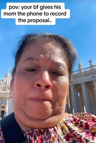 The hilarious video shared on TikTok shows her son about to get on one knee to propose to his girlfriend in Saint Peter’s Square in Italy.