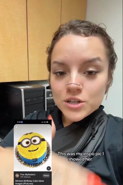 As the mom explained, she ordered a Minion-themed cake while providing the bakery with an image of how she wanted her cake to look.