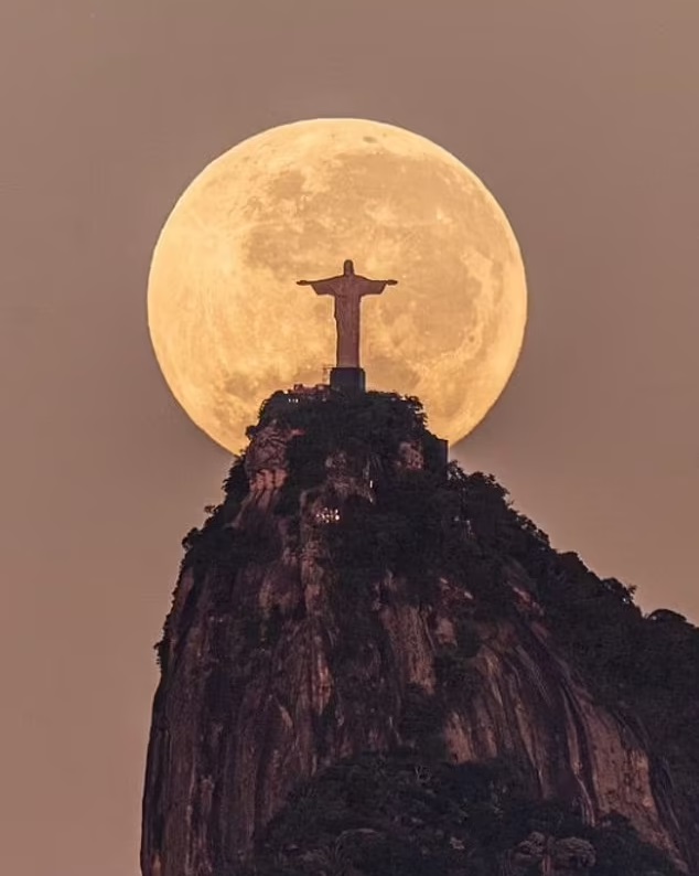 A photographer has hit the headlines after sharing stunning photos showing the statue of Christ the Redeemer appearing as if it was holding the moon.