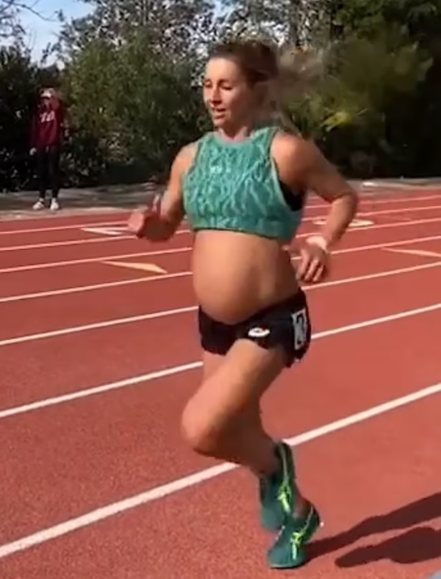 Despite her condition, the young athlete chose to remain active throughout her pregnancy and went to push herself to run a mile in just five minutes and 25 seconds to see if she could do it.
