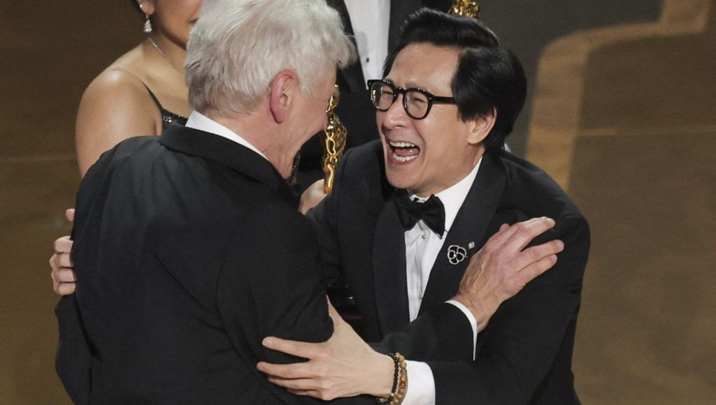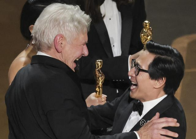 During the presentation of the award for Best Picture to the entire cast and crew of the movie Everything Everywhere All at Once, Quan and Ford reunited with a harm embrace on stage.