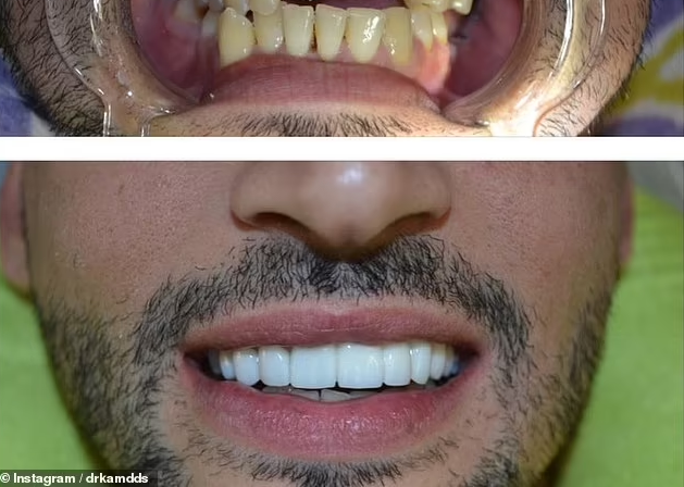 The model-turned-actor also transformed his smile with a set of implants. He appeared on the Instagram feed of LA dentist Dr. Kam Kamangar, who shared before and after photos of the work that he had done to the model’s teeth.