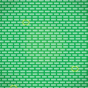 You are probably distracted by the word SEEDS, which is repeated many times but there is also the word WEED, which is hidden in three locations.
