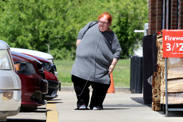 The 36-year-old typically uses a walker or wheelchair to help with her mobility but after dropping from over 700lbs to only 534lbs, she can now walk on her own again.