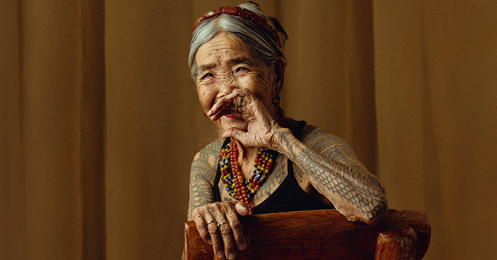 Apo Whang-Od from the Philippines is known for keeping the ancient art form of batok – a practice that involves putting a tattoo on the skin by hand using a thorn attached to bamboo dipped in natural dyes.