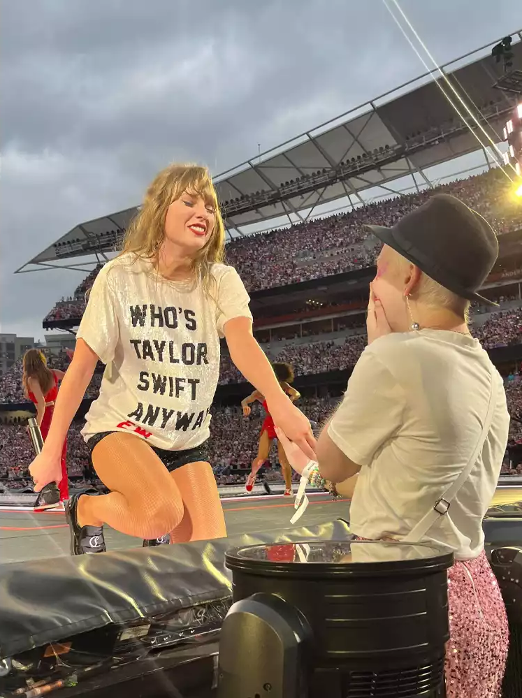 During Swift’s Eras Tour at Cincinnati, the ‘You Belong With Me’ hitmaker danced towards Ally and gave her a fedora from her ‘22’ music video.