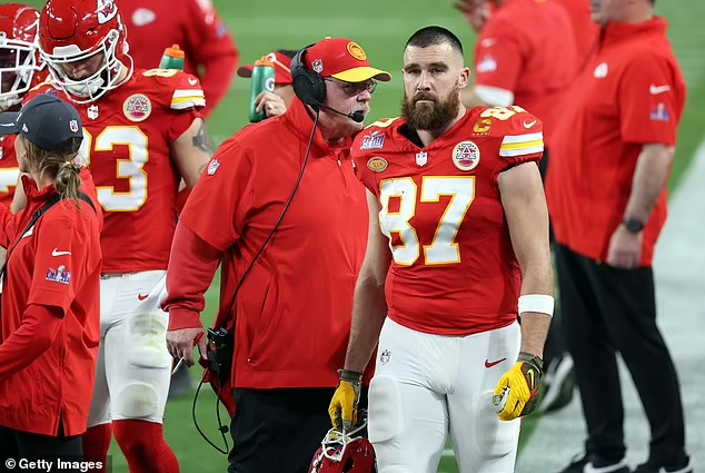 Following the Chiefs’ victory, Kelce said that the incident occurred as he ‘wanted the score to be different’ and that his coach is ‘one of the best leaders of men I’ve ever seen in my life.’