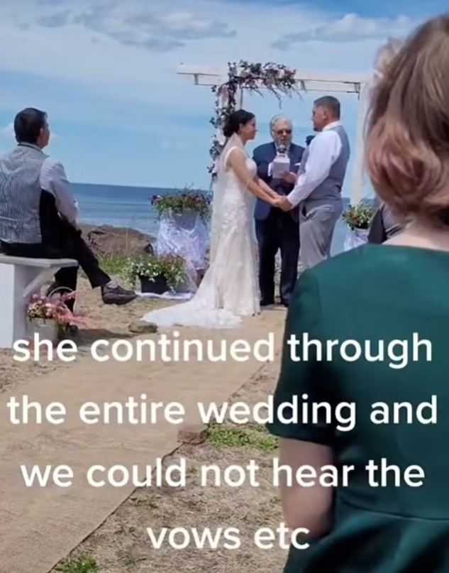 “She continued through the entire wedding, and we could not hear the vows, etc.”