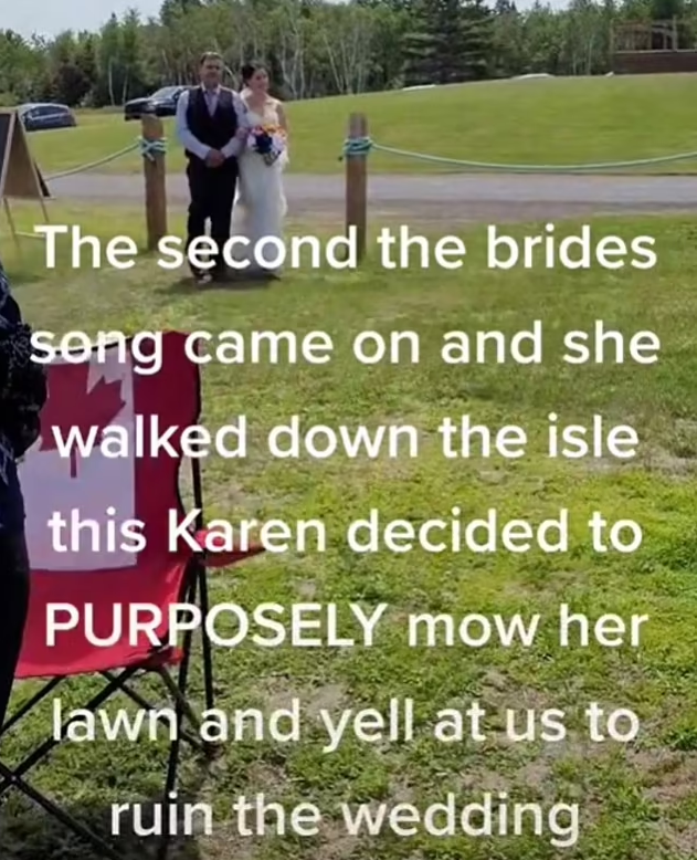 “The second the bride’s song came on and she walked down the aisle, this Karen decided to PURPOSELY mow her lawn and yell at us to ruin the wedding,” vampyyric wrote.