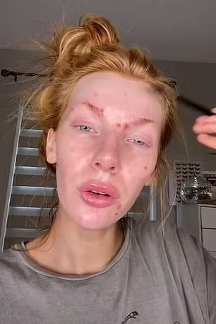 Pimples could be seen on her face before it transitioned to another video of her with makeup on, her spots completely gone.