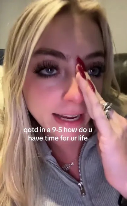 A young woman has sparked a fierce debate after breaking into tears while complaining about her 9-5 job saying such a lifestyle was crazy.