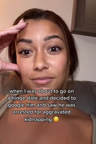 “When I was about to go on a Hinge date and decided to Google him and saw he was arrested for aggravated kidnapping,” she said on TikTok.