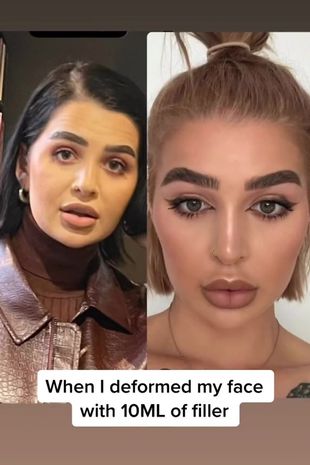 A 27-year-old woman has had too much fillers it left her face deformed after she became obsessed with injections from the age of 20.