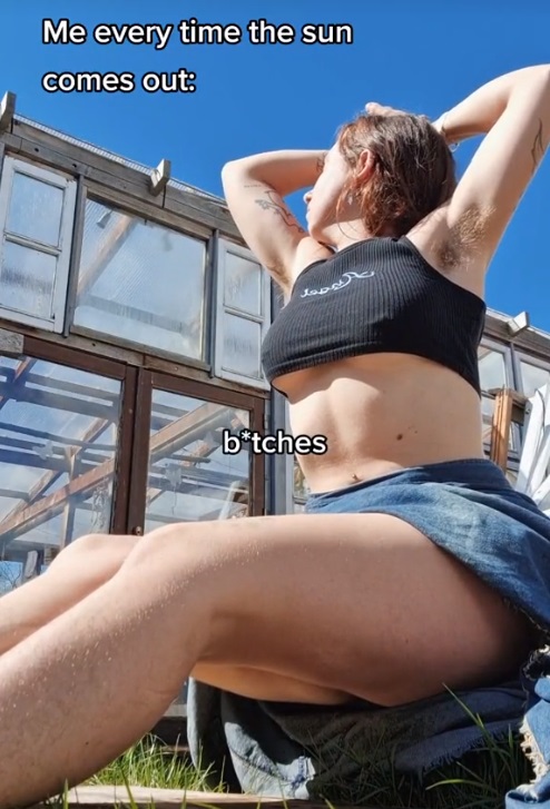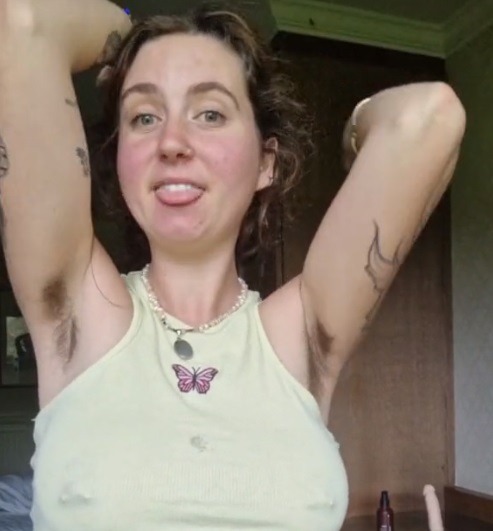 In one viral video that racked up over a million views, Lydi is seen raising her arms to the sky to show off her hairy underarms while posing in her favorite bikini.