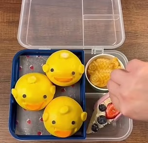 The lunchboxes contain anything from Disney characters to teddy-shaped home-baked bread to dumplings that look like ducks.