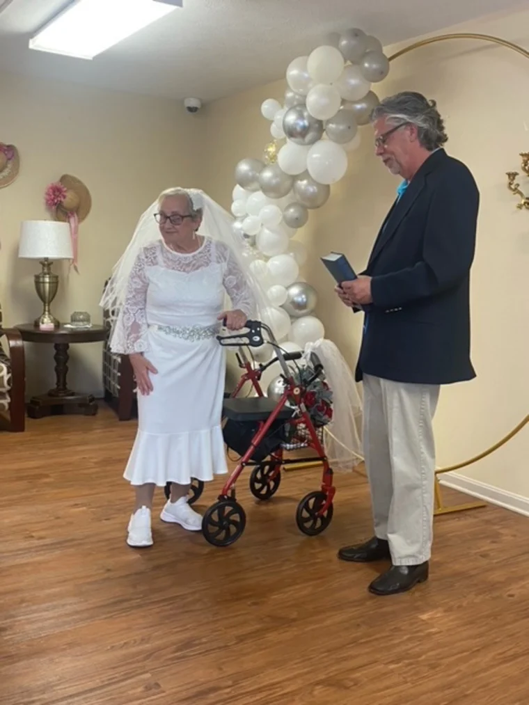 Dorothy said she planned her wedding herself, including the catering and decorations. She even got the retirement home property manager Rob Geiger to be the officiant.