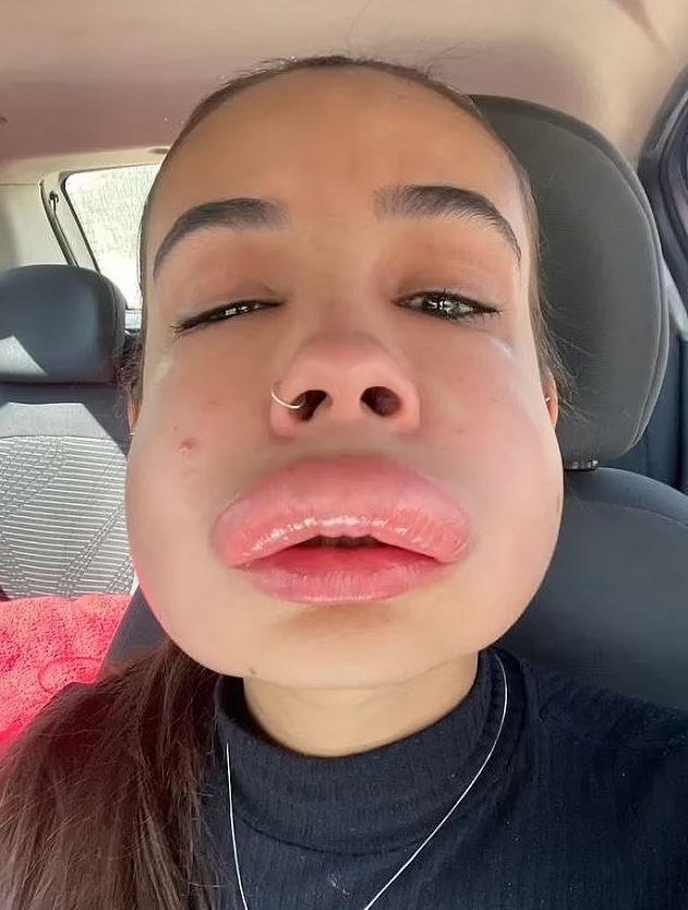 As the psychology student explained on TikTok, she was left with extremely swollen lips and face after suffering an allergic reaction to the filler dissolver.