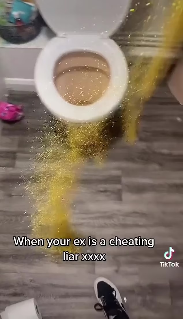 That’s when the disgruntled young lady stocked up on glitter of different colors and paid her ex a visit only to cover her entire house in the tiny, shiny particles which can be extremely hard to remove from rough surfaces.