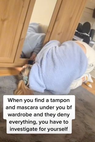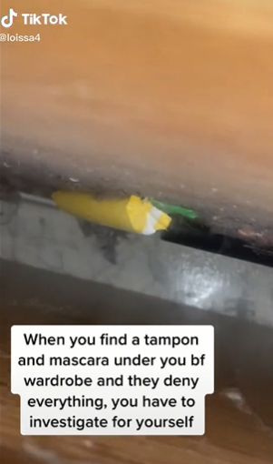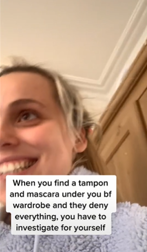 She took to TikTok and posted her story, writing: “When you find a tampon and mascara under your boyfriend’s wardrobe and they deny everything, you have to investigate yourself.”