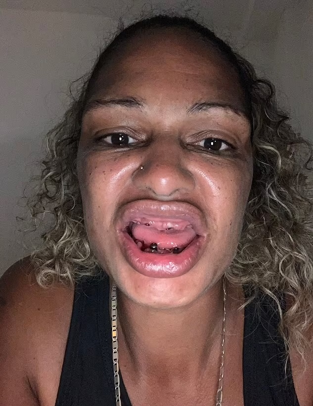 The stay-at-home mom also claimed her teeth began shifting after gingivitis caused her gums to recede when she was just a child, leaving her unable to close her mouth properly.