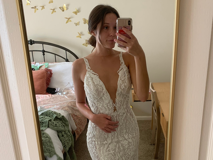 Emmali Osterhoudt and her roommate were visiting their local Goodwill to buy some picture frames for their wall when she found her future wedding dress.