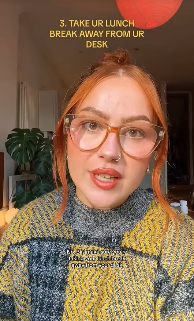 Her final advice is to always have your lunch break away from your workplace. “Just because everyone’s eating around you at their desks doesn’t mean to say that you have to.