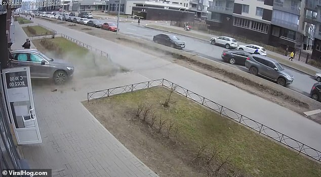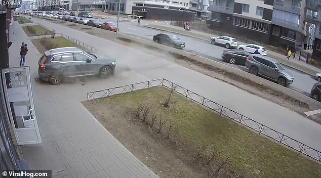 The driver originally tries to drive up and onto the pavement, but fails to stop reversing and crashing onto the sidewalk instead, almost hitting the pair. There might have been tragedies that ensued if the accident did hit the couple, but fortunately, they were safe.
