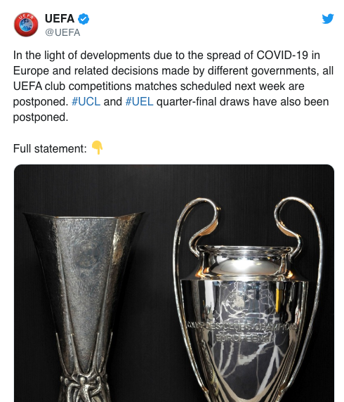 UEFA is postponing Euro 2020 for a year due to the coronavirus outbreak post the request from many federations.