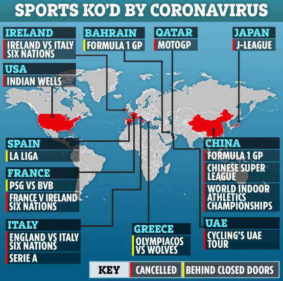 Spain has also announced that all sporting events will be closed for the public for the next couple of weeks. It has affected the premier league matches.