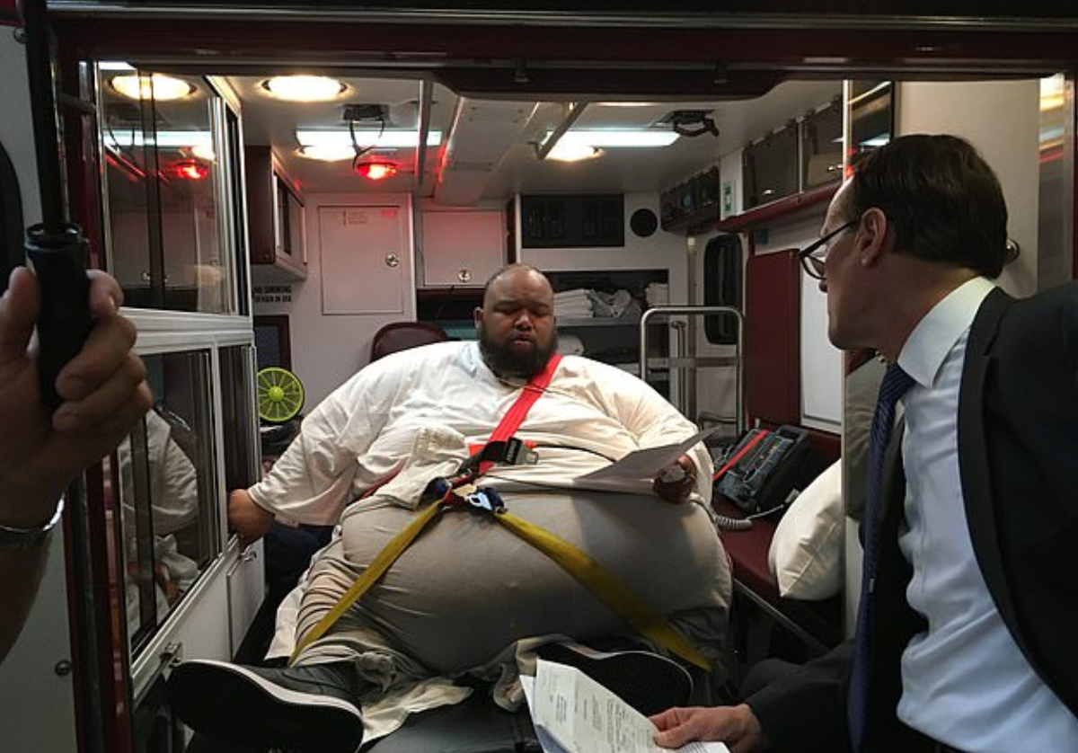 This is what happened when a drug dealer who weighs 600lbs was arrested and was drove to the courtroom for his trial.